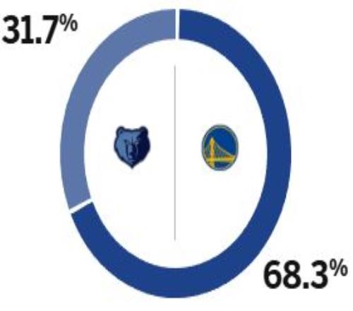 赛前,美媒ESPN预测本场比赛胜率,其中勇士为68.3%,灰熊为31.7%。