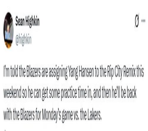 开拓者队记透露,开拓者此举是为了让杨瀚森收获更多的训练时间,并且他将在周一与湖人的比赛中重回球队。若之后杨瀚森在开拓者的出场时间有限,那么他本赛季将在两支球队之间频繁往返。